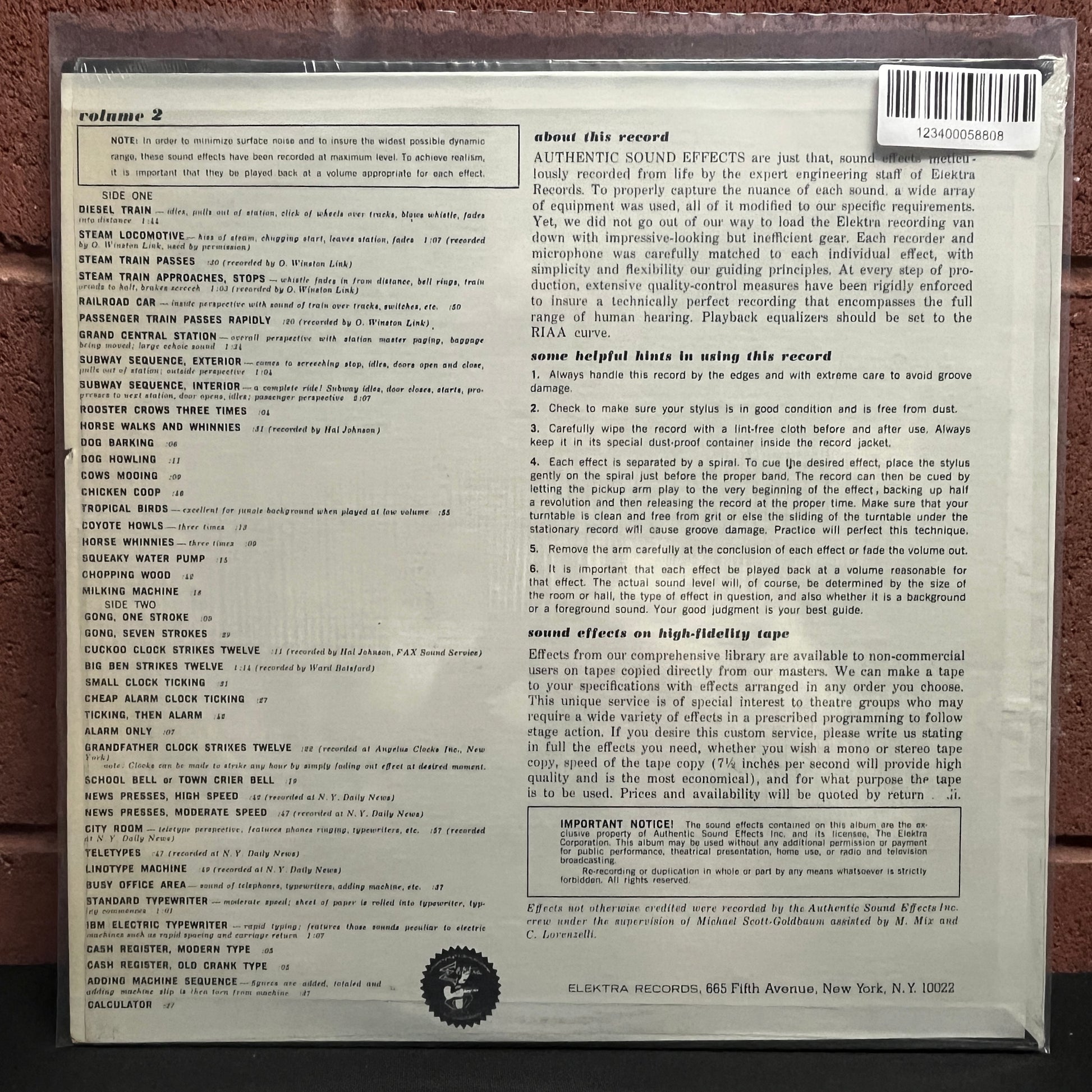 Used Vinyl: Jac Holzman "Authentic Sound Effects Volume 2" LP